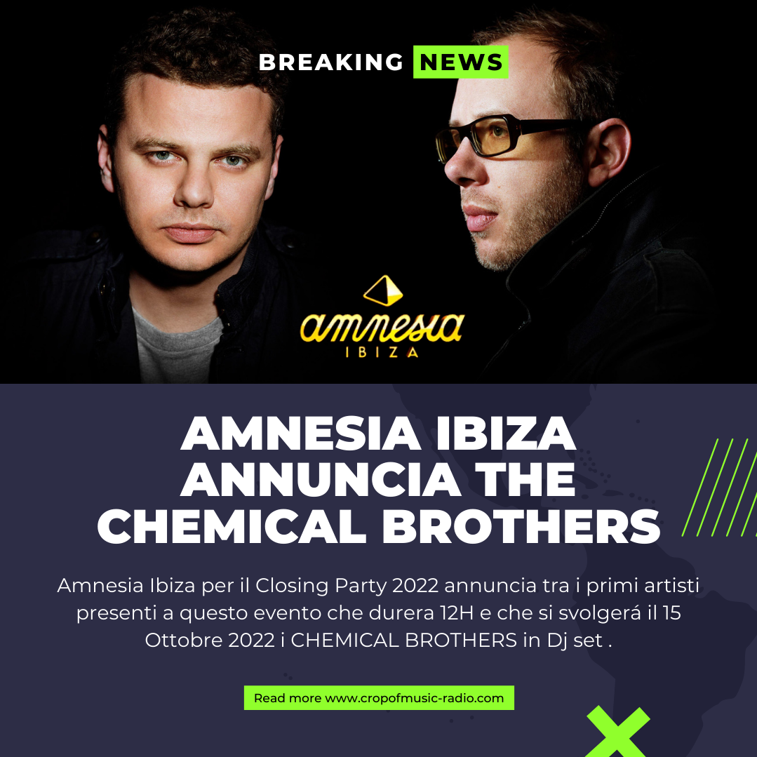 AMNESIA IBIZA ANNUNCIA THE CHEMICAL BROTHERS Amnesia ibiza annuncia tra i primi artisti presenti al suo closing party 2022 , che si svolgerá il 15